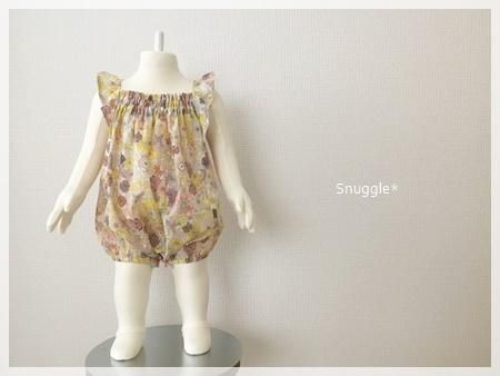 羽が生えているようなフリルが特徴のfledgeブラウスと同じシリーズの、ベビー用ロンパースver.です。