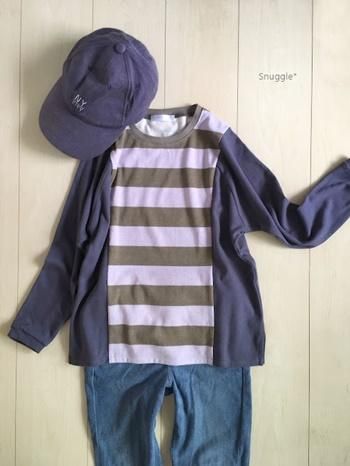通常のセットインスリーブのロンTよりも身幅とアームホール(肩〜脇にかけて)にゆとりがあり、とても動きやすい形です。