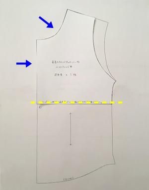 ※身頃はアームホールを含む一部のみ補正して記載しているので、肩落ちラウンドプルオーバーの身頃パーツに貼るか、別の紙に写したものに貼り付けてご使用ください(下画像参照)。