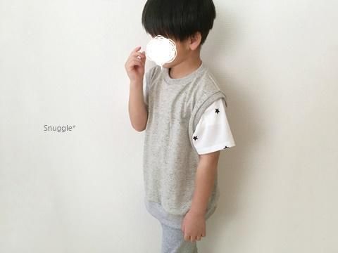 160size ベスト重ね着風Tシャツ(長袖)+フードアレンジ+裾リブアレンジ
