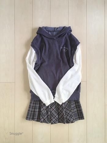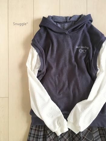 160size ベスト重ね着風Tシャツ(長袖)+フードアレンジ+裾リブアレンジ