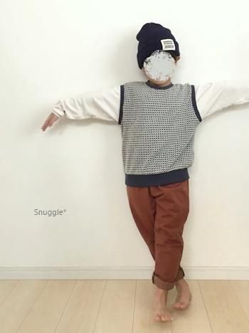 身長120cm 130size ベスト重ね着風Tシャツ(長袖)+裾リブアレンジを着用