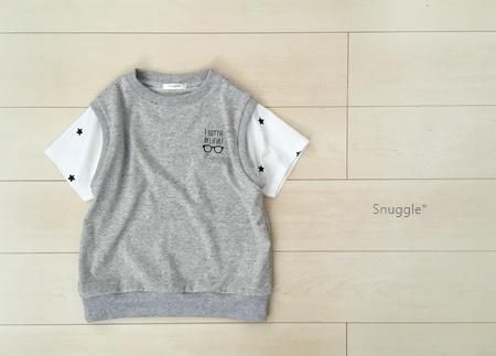 身長122cm 130size ベスト重ね着風Tシャツ(半袖)+裾リブアレンジを着用