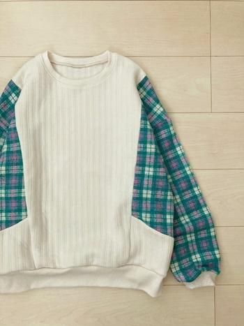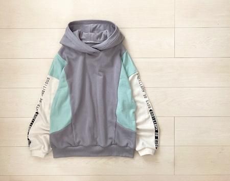 グレーの裏毛をメインに、ミントと生成りのミニ裏毛を合わせました。