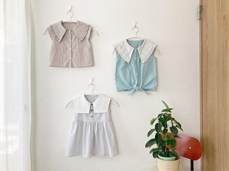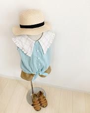 ビッグカラーとなりますので、ノースリーブに合わせた場合は肩に少しかかる大きさ。肩出しが苦手なお子様でも襟を付けることで着やすくなるかと思います。