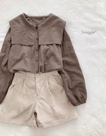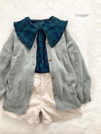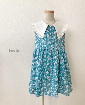 ビッグカラーとなりますので、ノースリーブに合わせた場合は肩に少しかかる大きさ。肩出しが苦手なお子様でも襟を付けることで着やすくなるかと思います。