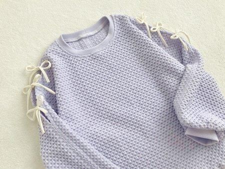スリット入りの袖をリボンで結ぶカットソーパターン。