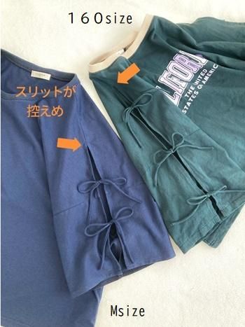 子どもサイズはスリット広め&リボン多め、大人サイズ(M・L)はスリット控えめ&リボン少なめの仕様です。