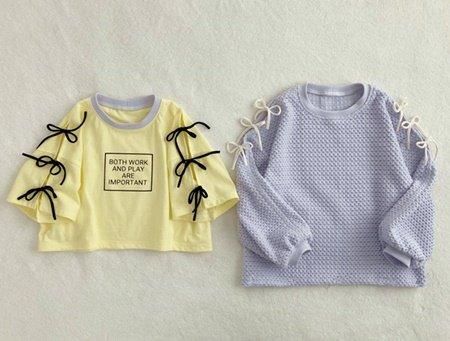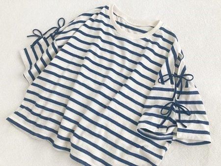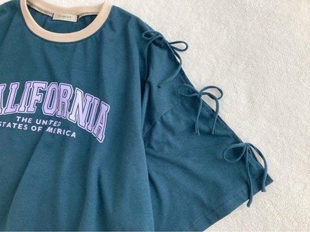 スリット入りの袖をリボンで結ぶカットソーパターン。